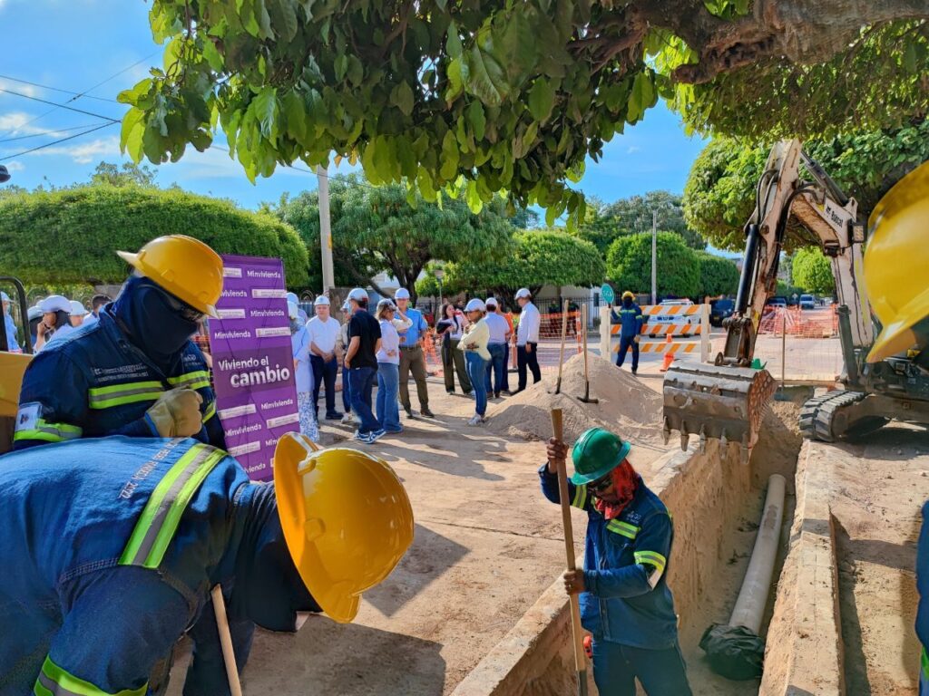 Junto a la ministra de Vivienda, Ciudad y Territorio, Catalina Velasco, el alcalde Hamilton García Peñaranda, instaló el primer tubo para el acueducto de Fonseca.