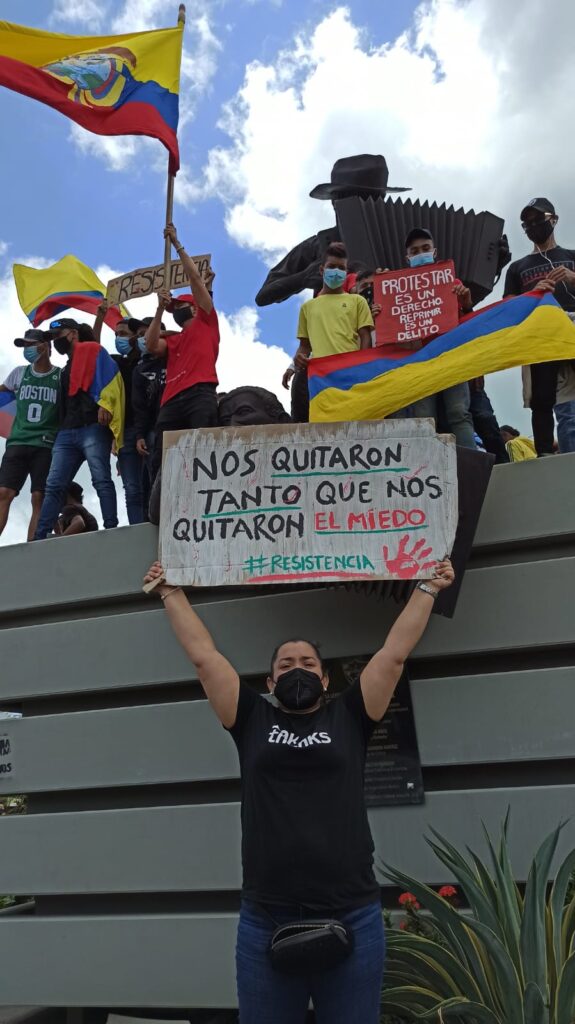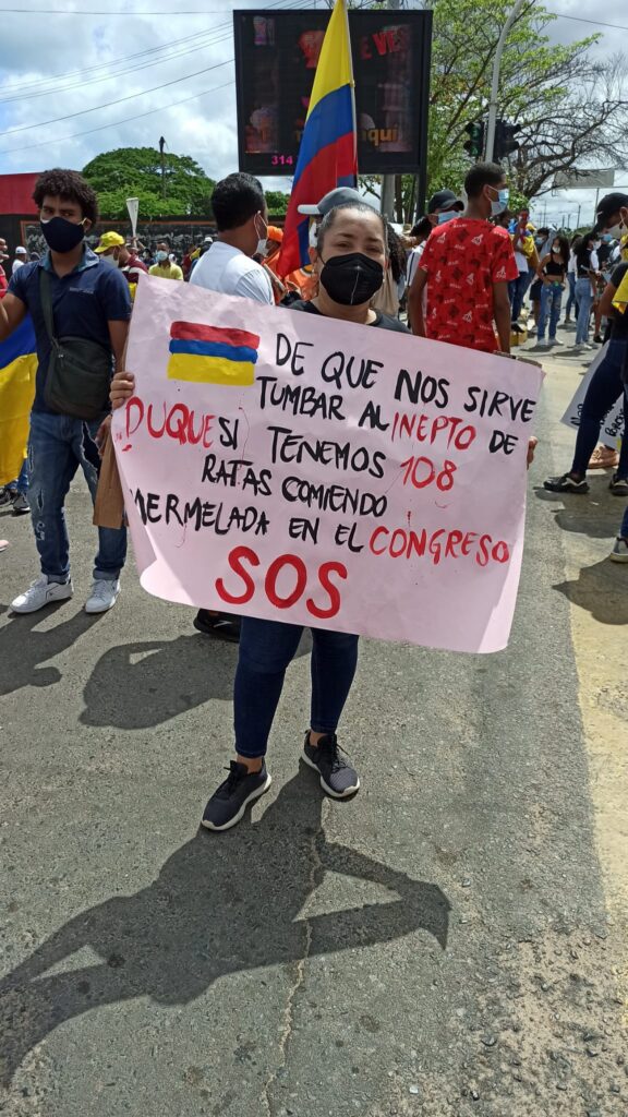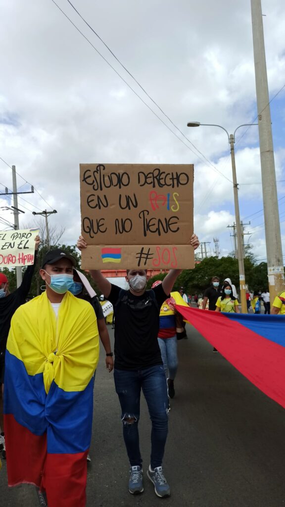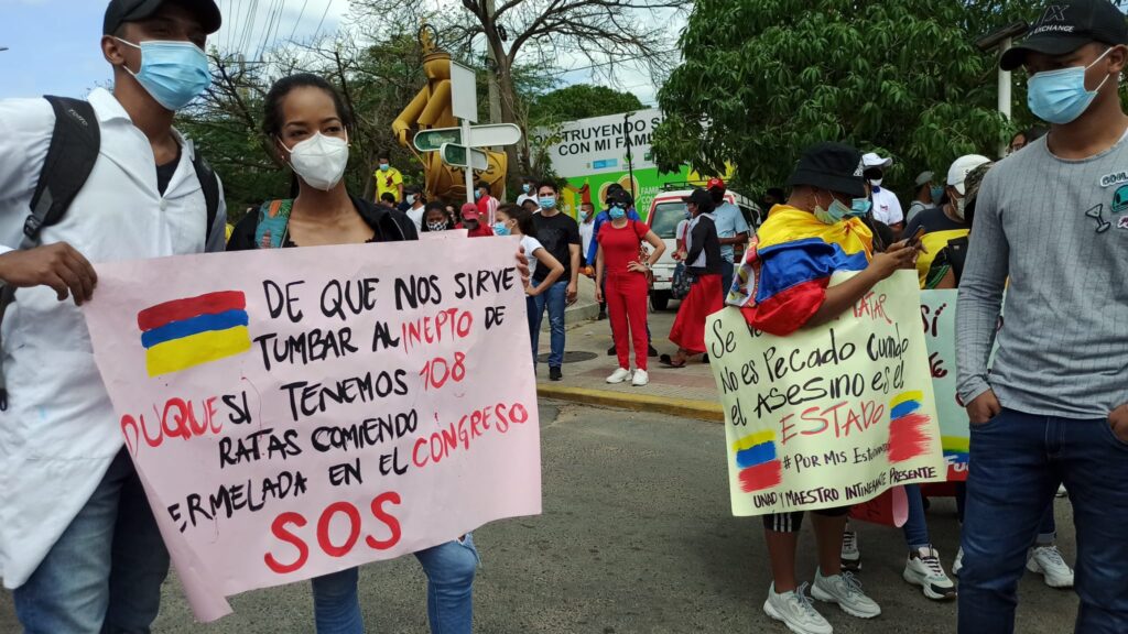 “Seguimos en pie de lucha en medio de las manifestaciones. Mostramos nuestro apoyo a las manifestaciones en Cali, Medellín, Barranquilla, Bogotá, donde las protestas han sido fuertes”, reveló uno de los manifestantes en las calles de Riohacha.