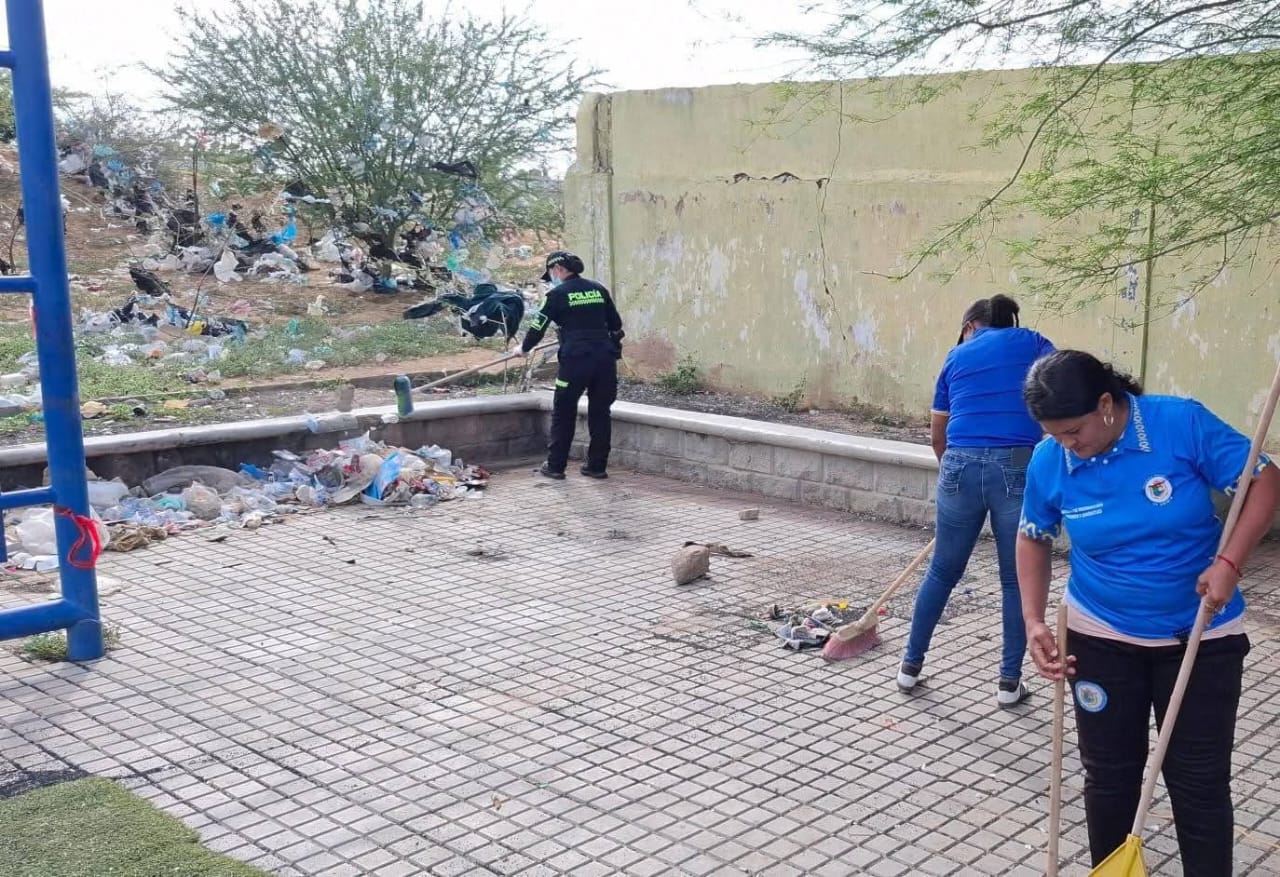 En articulación con la Policía de Infancia y Adolescencia, la comunidad del sector, la Oficina de Recreación y Deporte Juvenil y la empresa AAA, la Policía Comunitaria llevó a cabo una jornada de limpieza en el parque Los Guajiros. Esta acción permitió recuperar el espacio público, prevenir el consumo de sustancias psicoactivas, el hurto a personas y las lesiones personales.