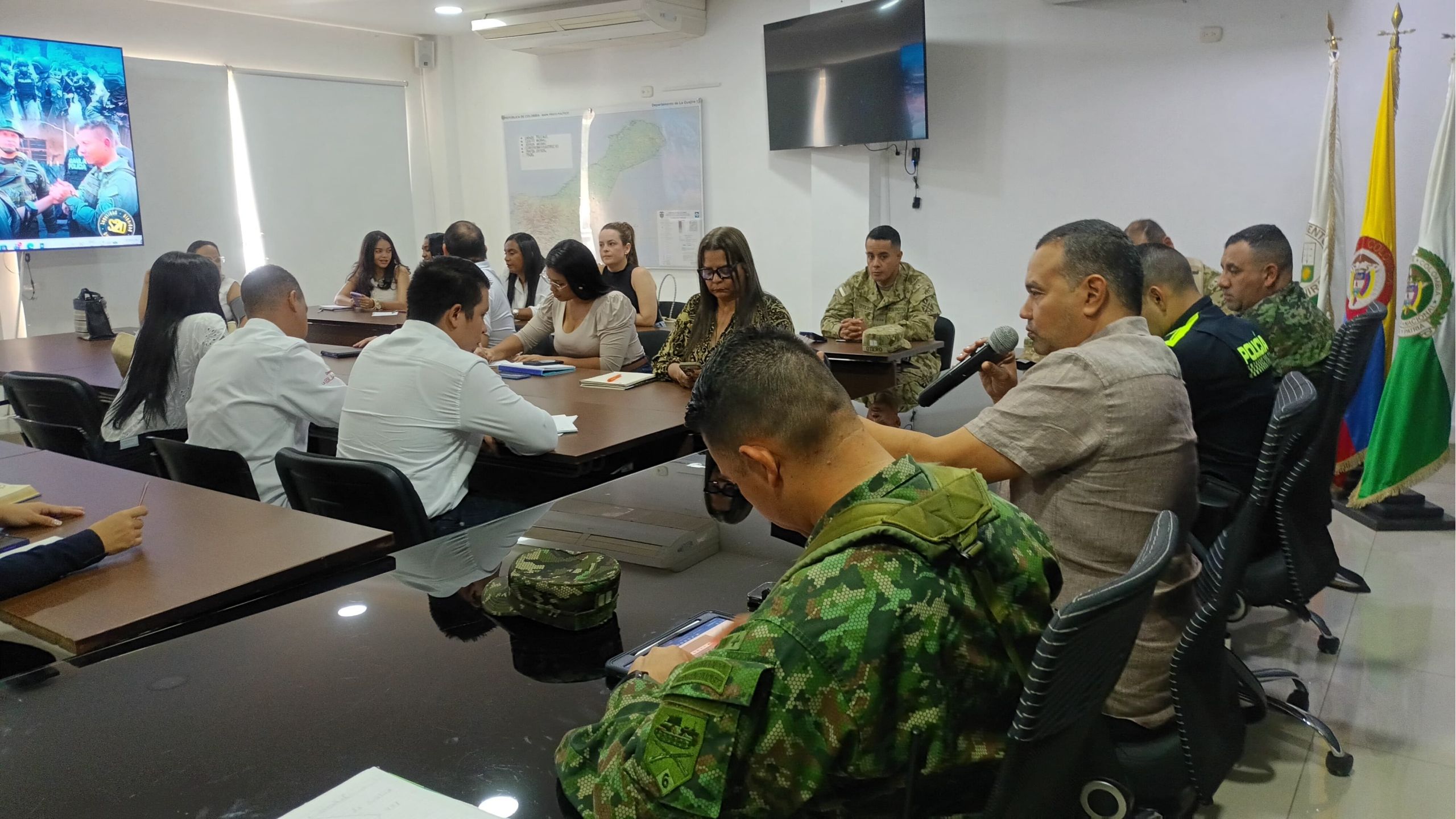 El encuentro reunió a delegados de la Policía Nacional, la Gobernación de La Guajira, administraciones municipales, el Ejército Nacional, Migración Colombia y otras entidades, comprometidas con la protección del proceso electoral comunal, considerado fundamental para el fortalecimiento del tejido social en los territorios.
