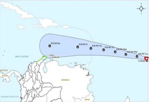 De acuerdo con el Centro de Investigaciones Oceanográfica (Cioh) el ciclón tropical Bret se encuentra en camino hacia el mar Caribe y se proyecta que ingrese a la región alrededor de las 20:00 horas del jueves 22 de junio. Según los expertos, es probable que el cono de influencia de la tormenta tenga una incidencia baja sobre La Guajira en la mañana del sábado 24, lo que ha llevado a activar el estado de vigilancia en el oriente del mar Caribe nacional.
