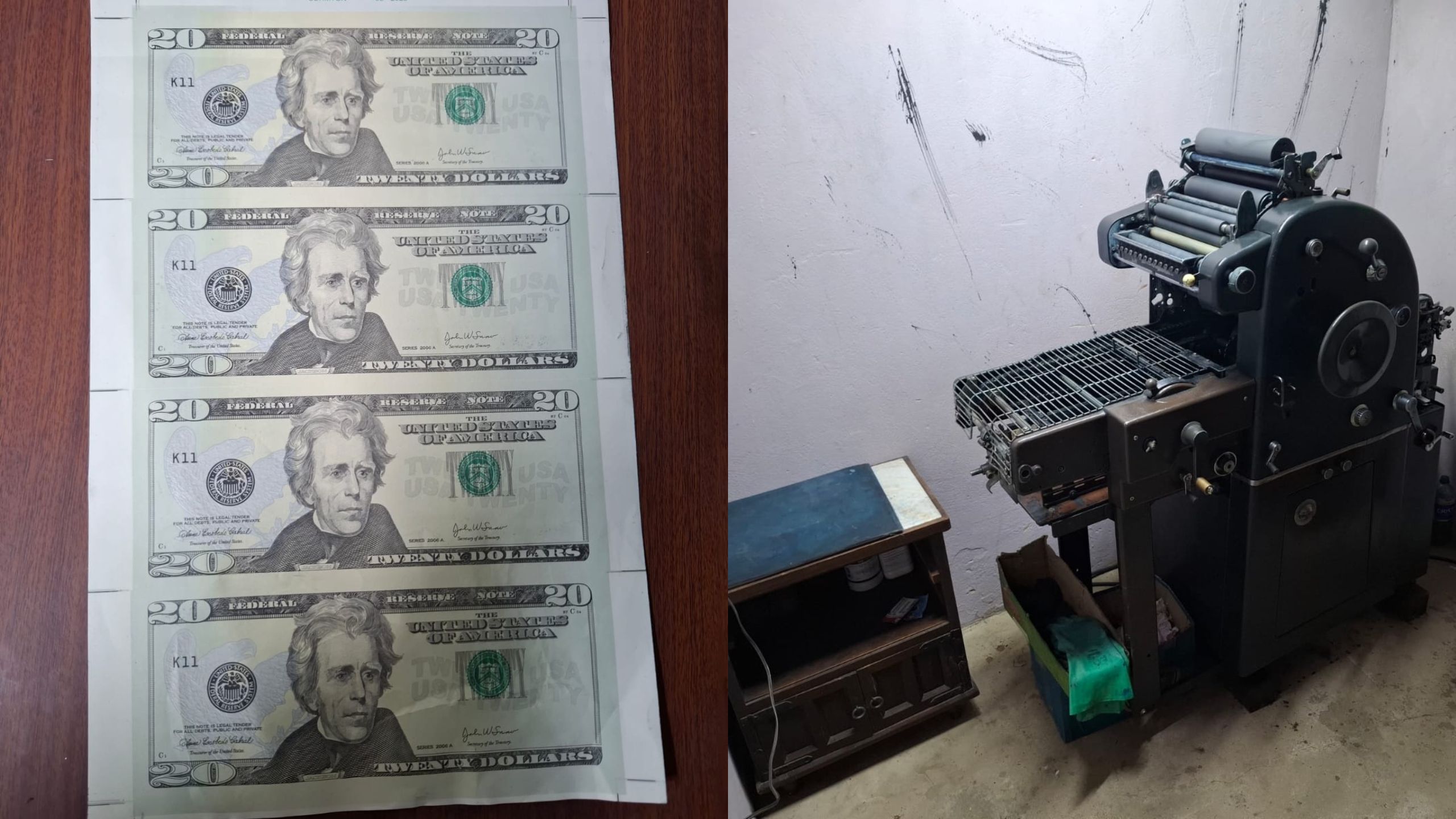 Durante la diligencia judicial fueron incautados 1.123.600 dólares falsos, correspondientes a billetes de 20 y 50 dólares, cuyo valor en el mercado ilegal superaría los 4.272 millones de pesos colombianos. Asimismo, se halló maquinaria especializada de alta tecnología, entre ella impresoras, tintas especiales, planchas de impresión y papel diseñado para imitar la moneda original.