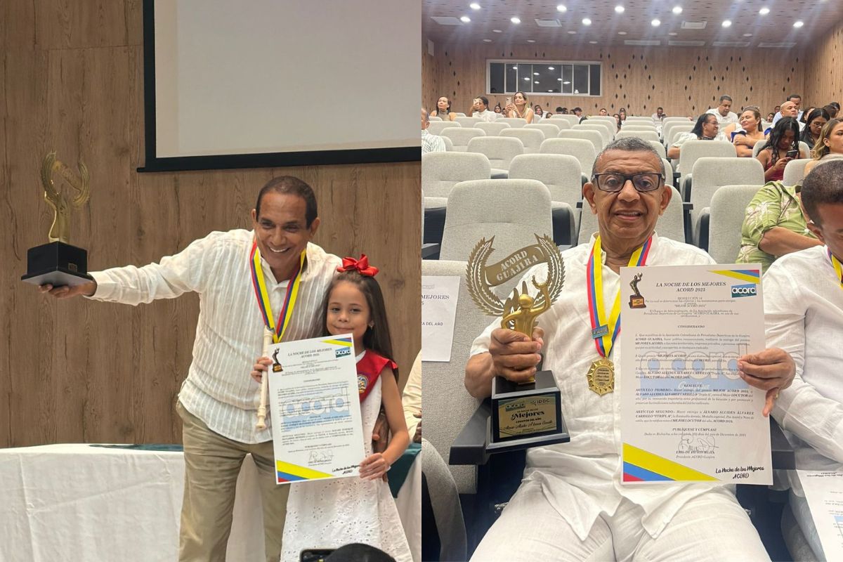 Igualmente fue exaltada la trayectoria del reconocido locutor y folclorista sanjuanero Álvaro Alcides Álvarez Carrillo, en un acto solemne que destacó su aporte al periodismo y a la preservación del folclor vallenato. Allí Álvarez recibió una Nota de Estilo y fue proclamado como Mejor Locutor del Año Acord 2025. Además, la agremiación lo distinguió como Socio Emérito Dorado, con la estatuilla dorada, medalla especial y reconocimiento reservado para comunicadores con una amplia y reconocida trayectoria profesional.
