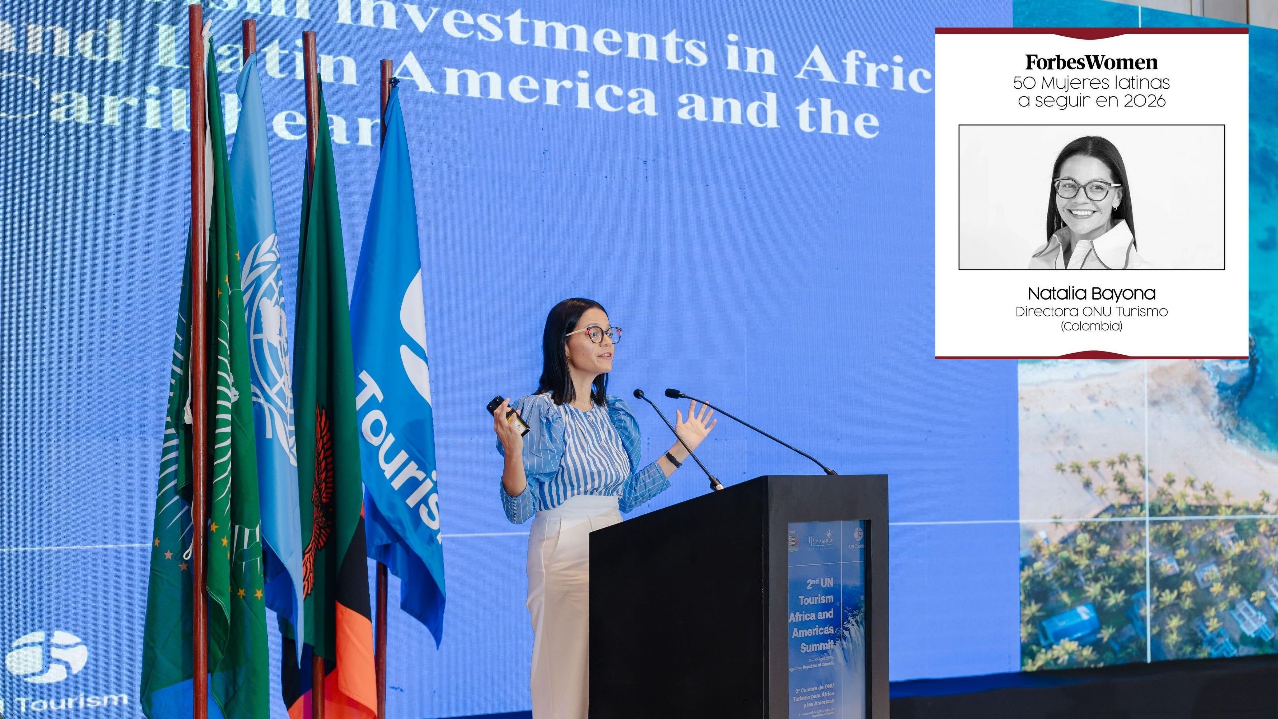 Nuevamente la colombiana Natalia Bayona Baquero para Forbes Women fue escogida entre las 50 mujeres latinas más destacadas para 2026. Qué orgullo para Colombia, Santander y La Guajira, de madre villanuevera a mucho honor. Ya la prestigiosa Revista Forbes la había escogido en la lista de las 100 mujeres poderosas 2025 a nivel mundial, donde la bumanguesa de madre villanuevera Natalia Bayona Baquero, se lució entre esas 100 mujeres que se destacan a nivel planeta tierra. Convirtiéndose La Guajira como un referente a nivel mundial con la talentosa Natalia, quien hoy lidera la Organización Mundial del Turismo como directora ejecutiva OMT (Organización Mundial del Turismo). Distinción que engalana a Colombia, a su tierra natal Bucaramanga de donde es su padre, el constructor Héctor Bayona y a La Guajira, especialmente a Villanueva de donde es su madre Ligia Baquero Rodríguez. Qué orgullosos están sus abuelos allá en el reino celestial: Ospicio Baquero Herrera, exalcalde de Villanueva y Ludovina Rodríguez Daza. Orgullosos también sus hermanos Paula y Andrés Bayona Baquero, y la larga lista de sus tíos por tan trascendental acontecimiento.
