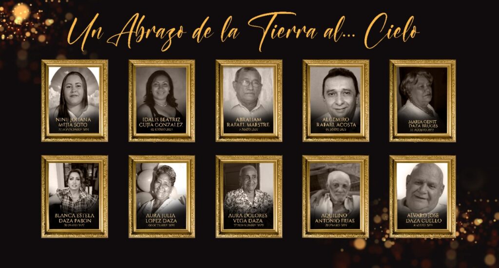 Del mismo modo recordé a mi amigo, el Mono de Man, a Jaime Fuentes y a José María Díaz ‘Pumpo’, padre del destacado profesor Roberto Díaz, amigo de grata amistad. En la siguiente valla, estaba la imagen de ese gran patriarca sanjuanero, como lo fue el doctor Práxedes Bolaño, la señora Julieta Díaz, el médico del Pueblo, Leandrito, la profesora Marta Coronel, junto a Lourdes Mercedes Vega y mi apreciada prima Luz Ángela Mendoza de Los Pondores. Continué con mi recorrido, buscando muchas más caras conocidas y amigos de confianza que están ya en el cielo, y me encontré con el retrato de Nini Johana Mejía Soto, la desaparecida esposa de Armando Fuentes, mi sobrino, quien dejó a dos angelitos huérfanos. Junto a ella, una amiga de grata recordación como Blanca Estela Daza Pabón, la dinámica empresaria y exconcejal que también se nos fue a la eternidad.