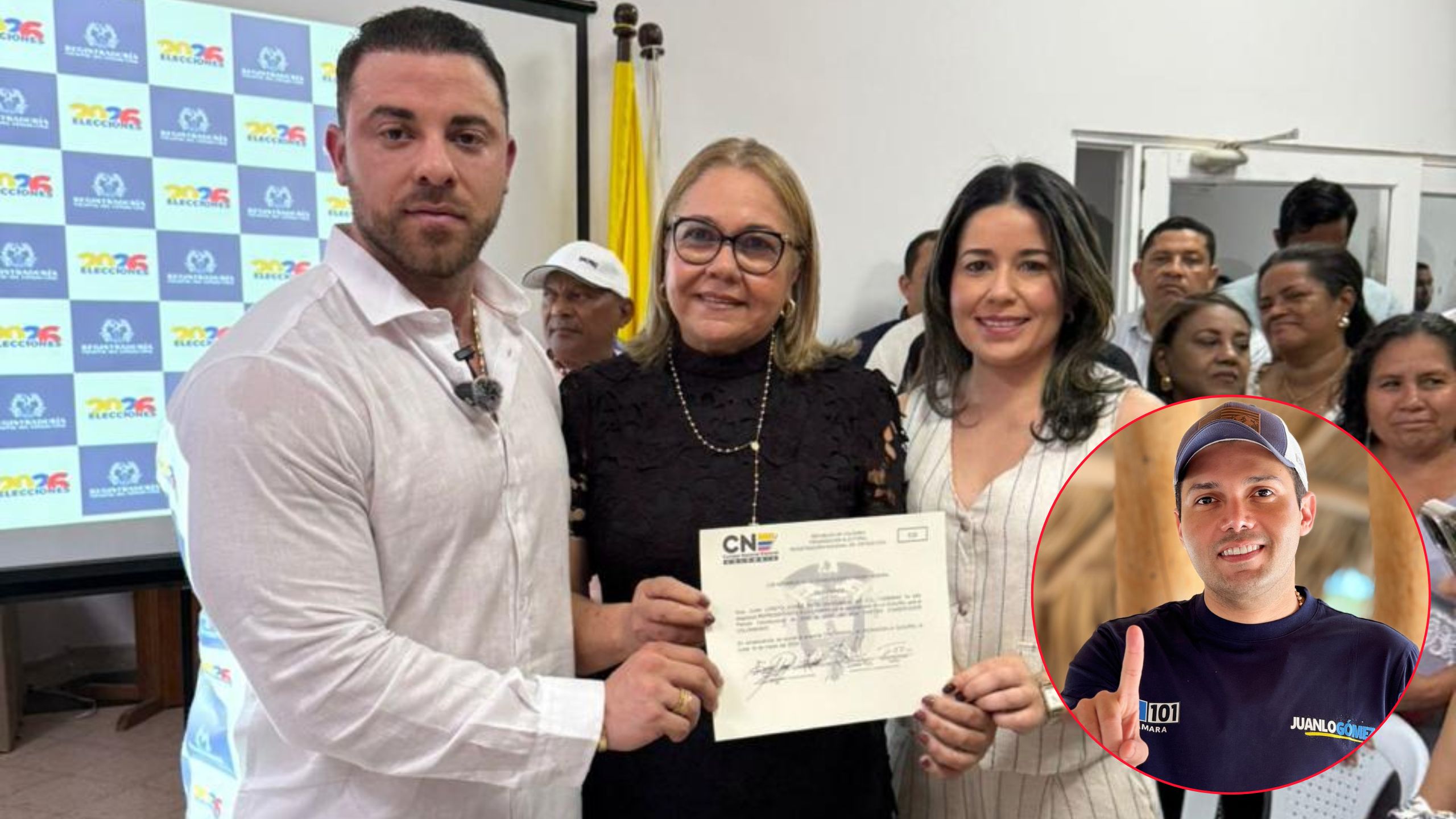 En un acto realizado en el Centro Cultural de Riohacha, la exrepresentante María Cristina Soto recibió la credencial que acredita a su hijo, Juan Loreto Gómez Soto, como representante a la Cámara por el Partido Conservador. El dirigente político no asistió a la ceremonia y, según se informó, presentó poder y excusó su inasistencia al evento.