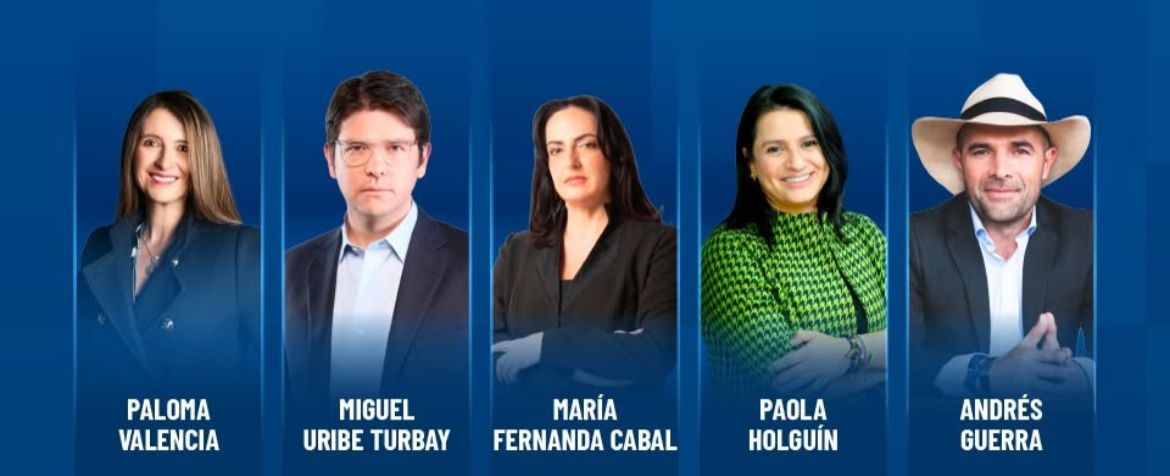 Este lunes 26 de mayo se llevará a cabo el primer debate presidencial del Centro Democrático, en el que participarán los cinco precandidatos oficiales de la colectividad: Paloma Valencia, María Fernanda Cabal, Paola Holguín, Miguel Uribe Turbay y Andrés Guerra.
