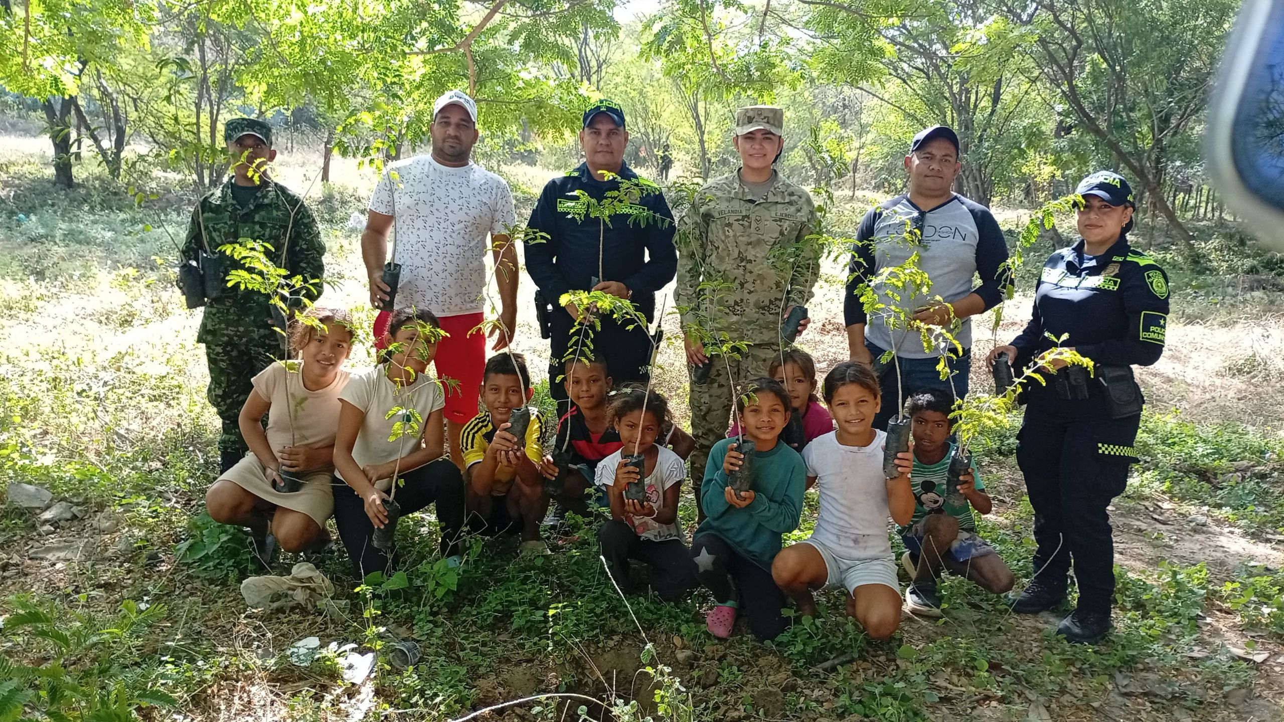 En una apuesta por articular la protección del entorno con la convivencia ciudadana, la Policía Nacional lideró una jornada ambiental en el municipio de Hatonuevo, donde se desarrolló una campaña de siembra de árboles nativos en la ribera del balneario El Pozo.