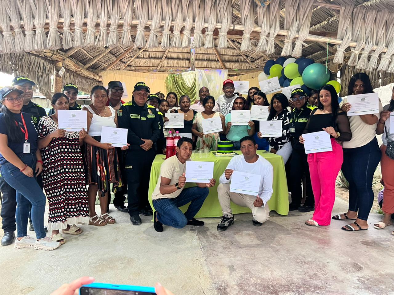 En el sector de la pista del municipio de Maicao, la Policía Nacional clausuró el programa “Espacios Pedagógicos para la Convivencia y Educación Cuidada”, una iniciativa formativa en la que 20 participantes culminaron con éxito un proceso de 18 horas de capacitación orientado al fortalecimiento de la convivencia, el respeto por los derechos humanos y la prevención del delito.