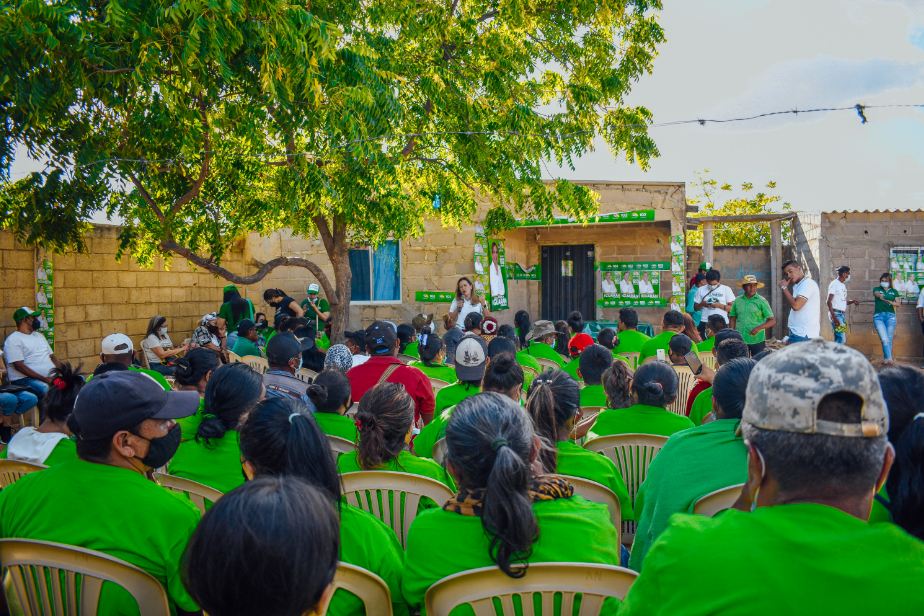 En medio de un discurso sentido, con líderes tradicionales y docentes de la Capital Indígena del país, la candidata del 102 de Colombia Renaciente, Teresa ‘Pinina’ Iguarán recordó su idiosincrasia, sus raíces y el amor que profesa a la tierra que la vio nacer: Uribia, «mi tierra natal, a dónde construí mi infancia, mi juventud, mis sueños, la tierra de mis hijos, de mi familia, de mis compañeras de la Normal Superior Indígena, donde he servido, donde me he desarrollado como profesional” y siguió argumentando lo que sería Uribia en manos de una mujer wayuú que quiere darlo todo por ver La Guajira renacer.