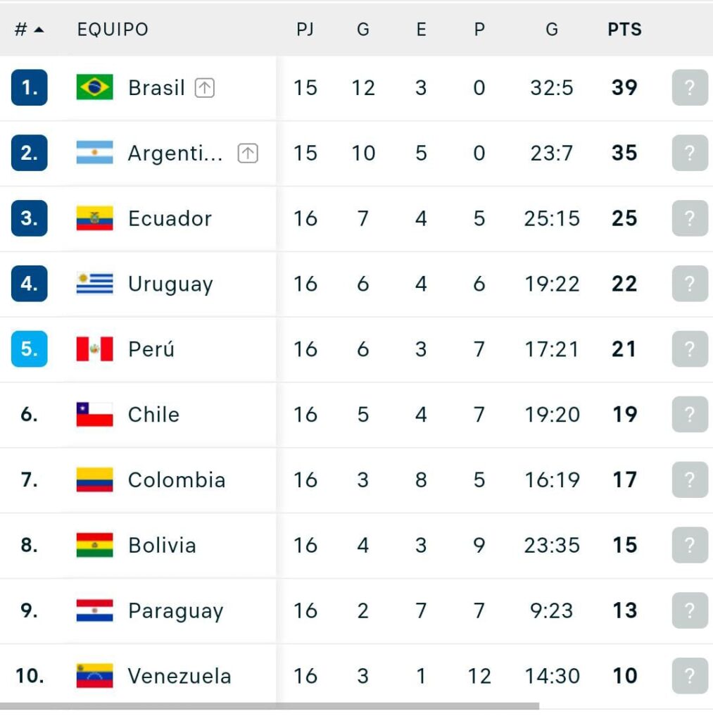 Cabe recordar que la tabla de posiciones de las eliminatorias va de la siguiente manera: